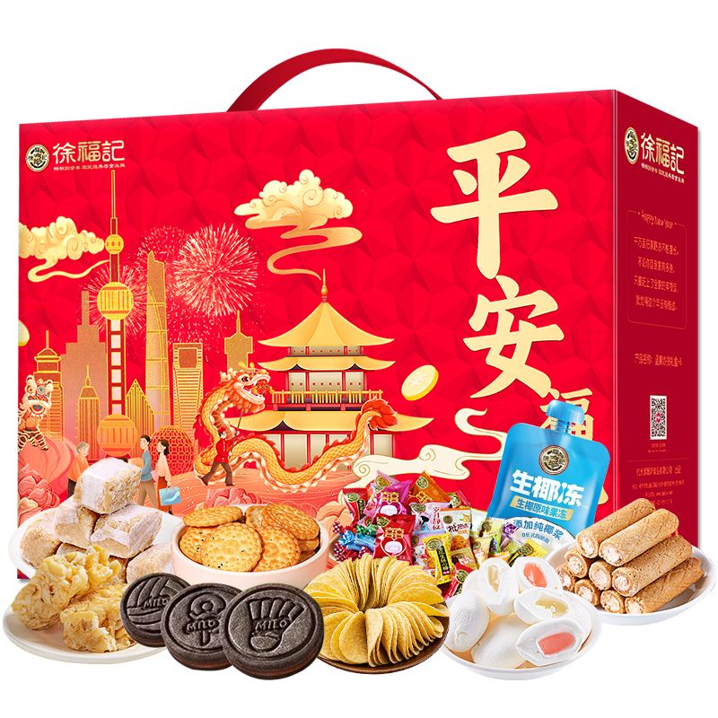 商品名称:徐福记平安福利零食礼盒美禄饼干什锦糖果沙琪玛生椰果冻新春礼 平安福礼1453g