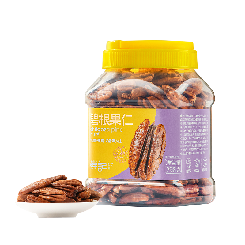商品名称:鲜记 碧根果仁(奶油味)298g/罐 个大饱满 皮薄易剥休闲零食坚果