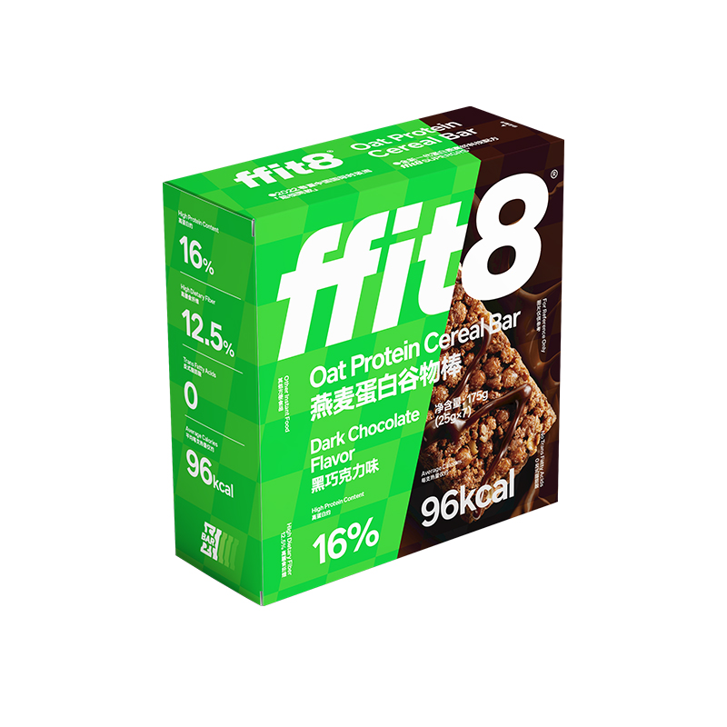 商品名称:ffit8燕麦蛋白谷物棒蛋白棒能量棒 谷物早餐代餐棒饱腹控卡零食 黑巧克力味175g×2盒