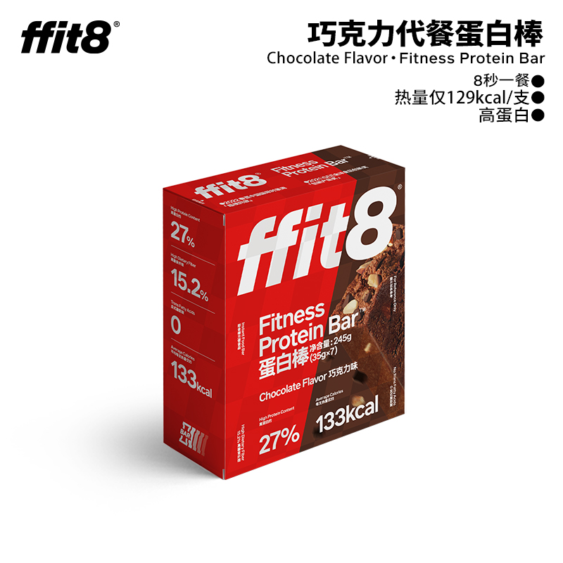商品名称:ffit8蛋白棒 乳清蛋白营养能量棒代餐棒速食饼干 饱腹高蛋白粉零食 巧克力味35g*7支*2盒