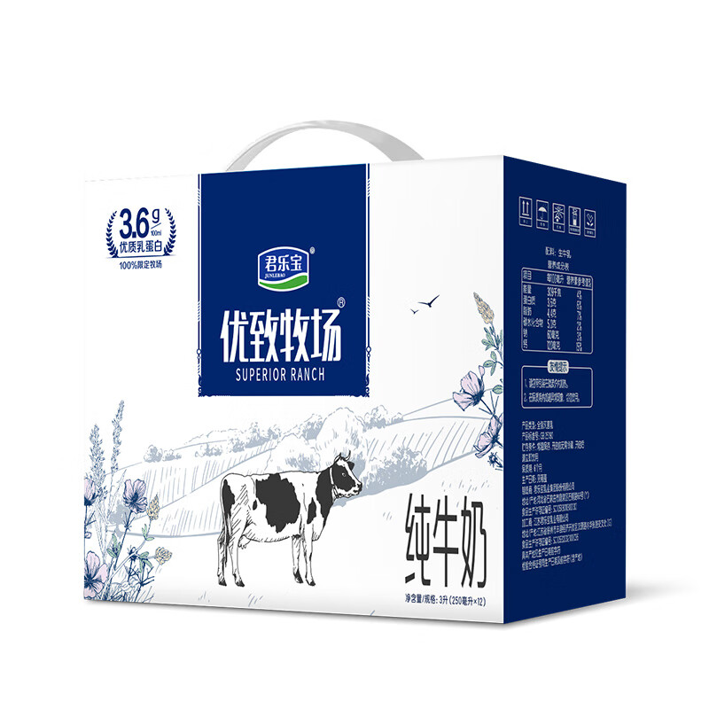 商品名称:君乐宝(GYZY)优致牧场纯牛奶(原味)利乐砖 250ml*12盒