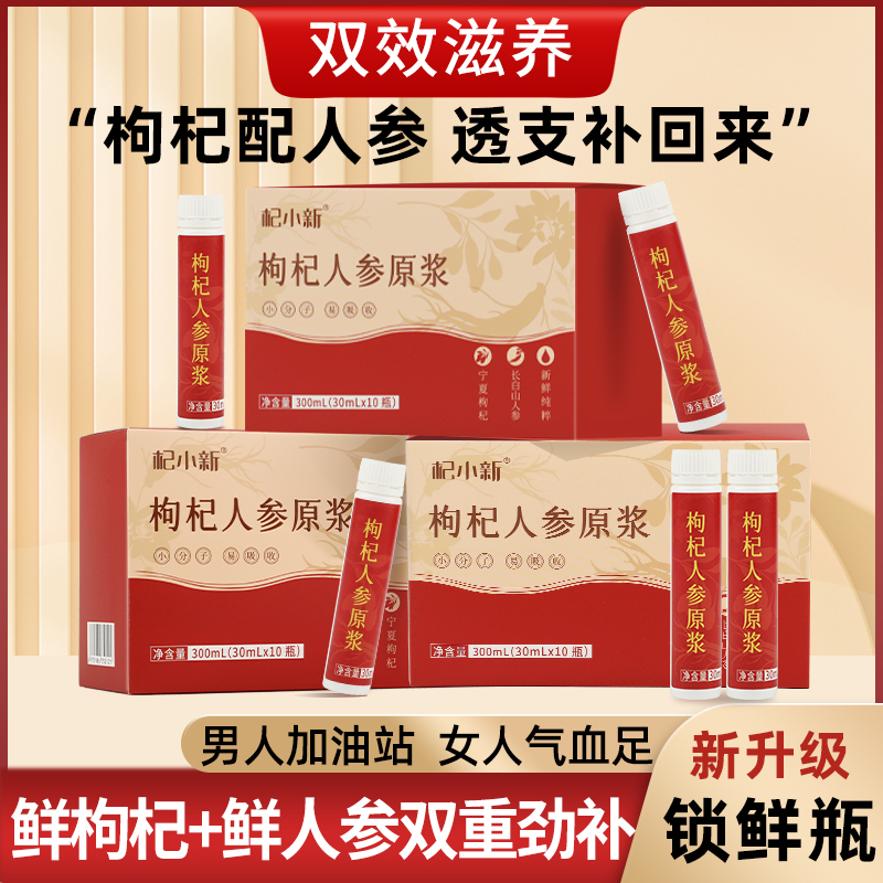 商品名称:杞小新枸杞人参原浆瓶装(1盒30ml*10瓶)*2盒