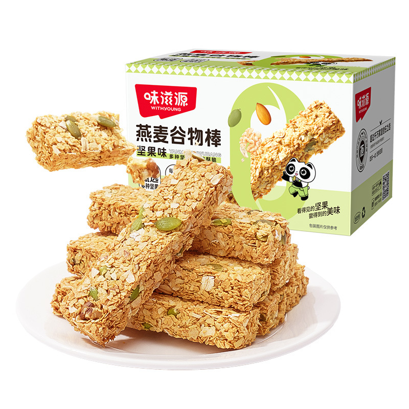 商品名称:味滋源坚果燕麦谷物棒抗饿饱腹蛋白棒轻食代餐粗粮饼干200g箱装零食下午茶