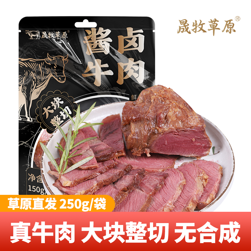 商品名称:晟牧草原卤味高品质酱牛肉真空熟食腱子肉150g/250g袋 下酒美食 休闲零食 营养丰富 包邮