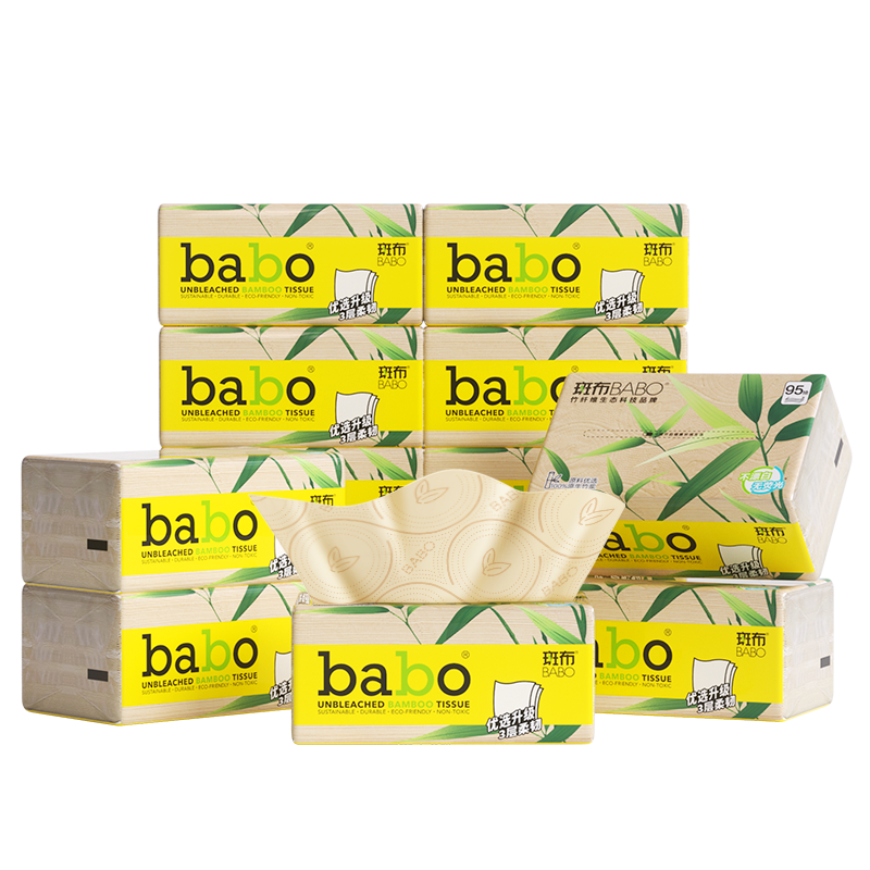 商品名称:斑布(BABO)抽纸【新品上市,体操冠军代言】95抽12包加大加厚M码 创新高定量原生竹浆纸巾