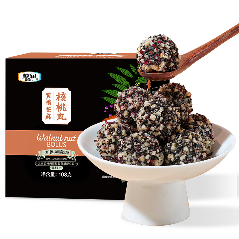 商品名称:核润云南工厂直发黄精芝麻核桃丸坚果丸休闲零食108克*2盒