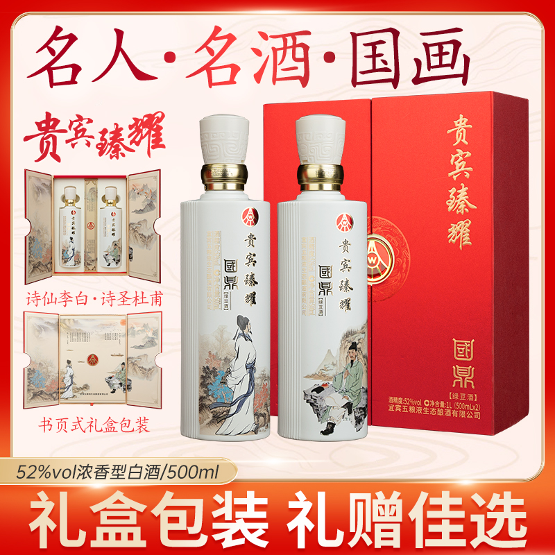 商品名称:五粮液 贵宾臻耀 收藏纪念 52%vol 500mL*2瓶 礼盒装(名人 名酒 名画)