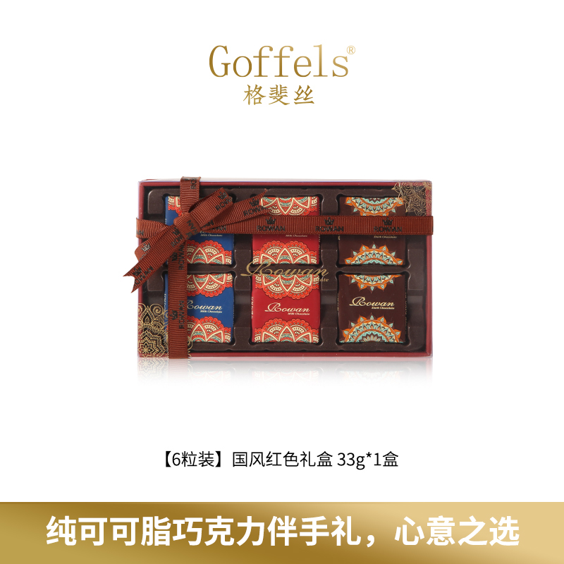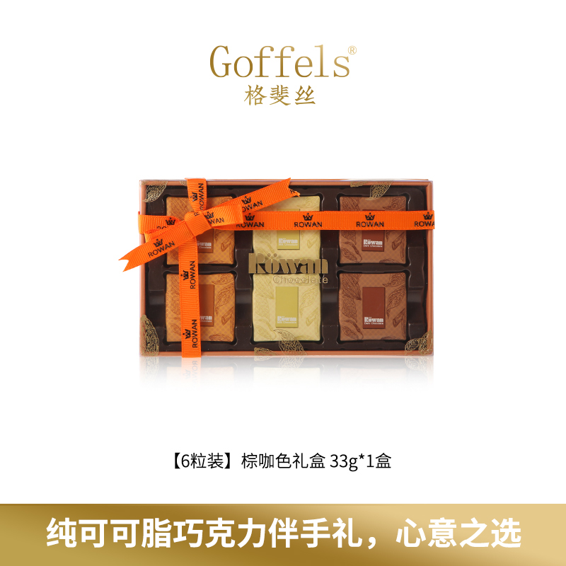 商品名称:Rowan可可果pvc礼盒33g*6粒 精心打磨72小时的巧克力浆,微焦可可,回口不酸不涩,健康好巧