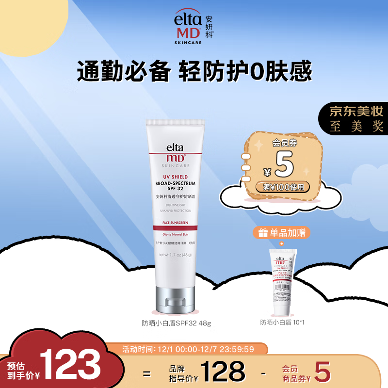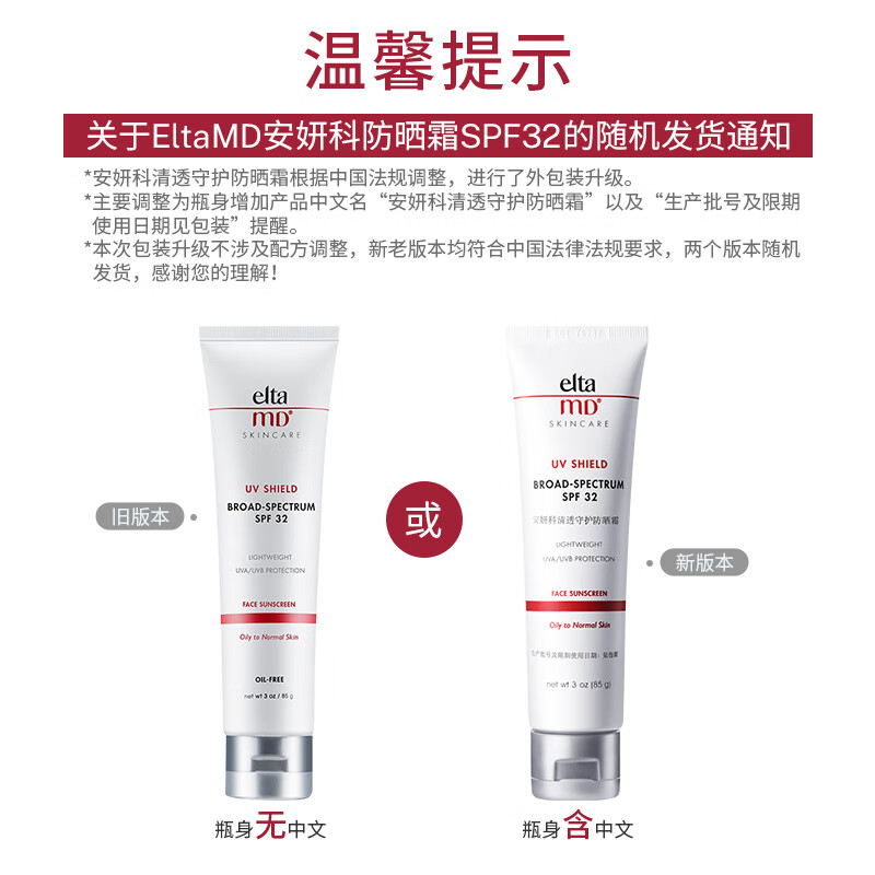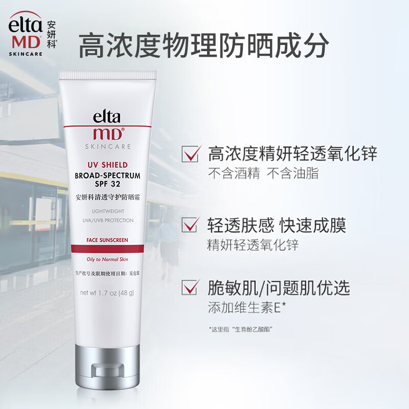Elta MD安妍科小白盾防晒霜SPF32 48g男女士户外高倍面部防晒乳通勤专用