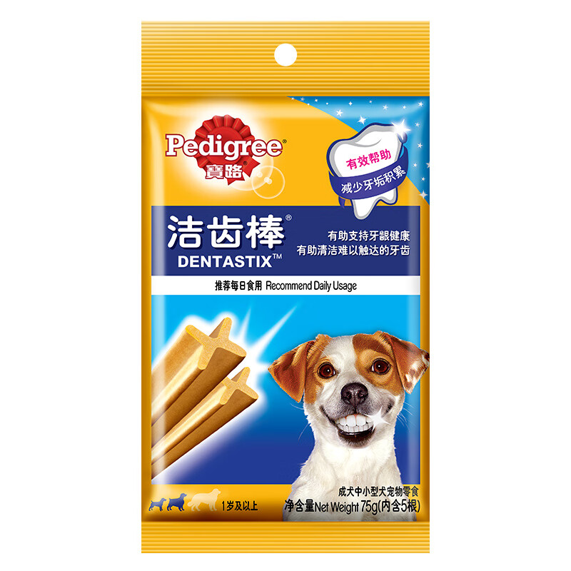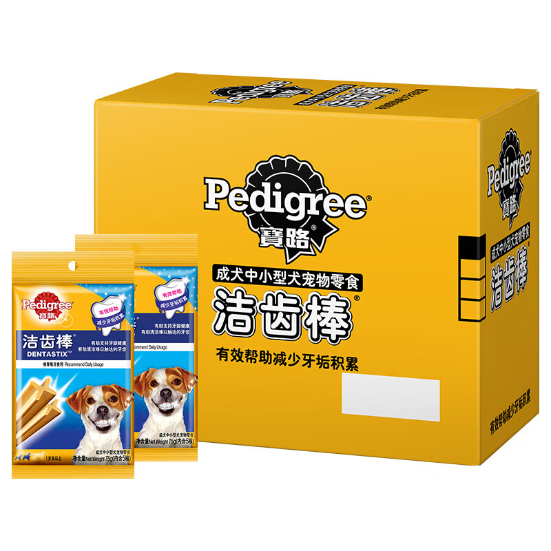 宝路狗磨牙棒狗狗零食 洁齿棒中小型犬成犬狗75g*12包泰迪法斗柯基
