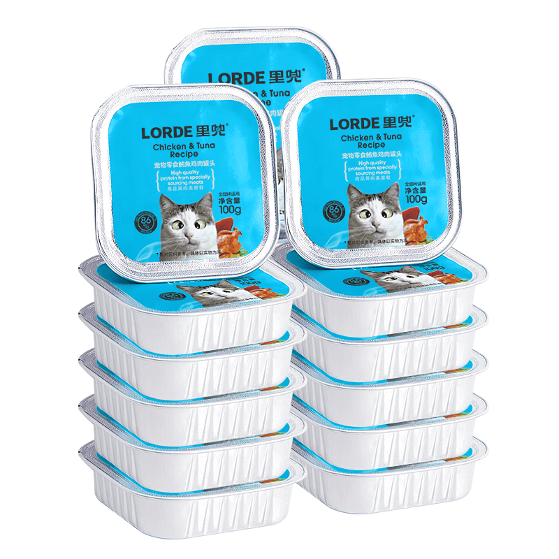 lorde里兜猫罐头猫零食补水餐盒成幼猫湿粮金枪鱼混合口味100gx18盒