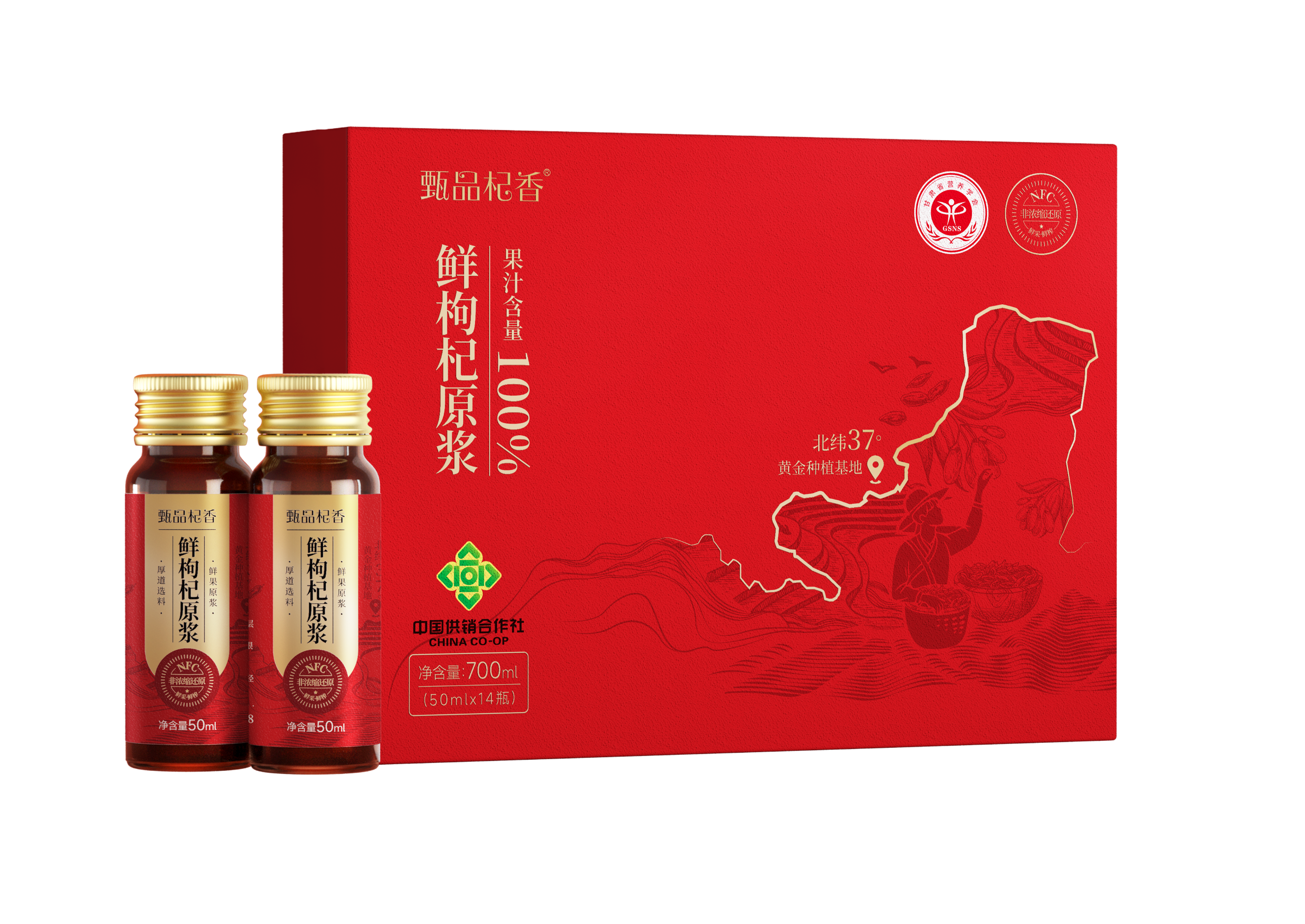 商品名称:甄品杞香NFC鲜榨枸杞原浆700ml 14瓶装礼盒