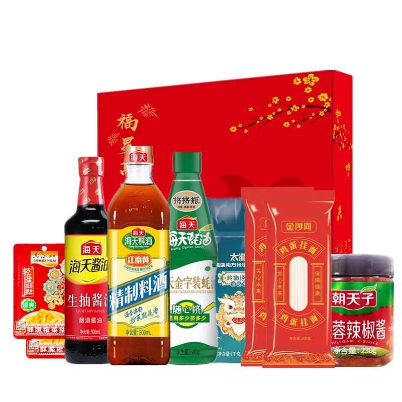 商品名称:海天/太粮/金沙河/乌江/朝天子粮油米面调味组合大礼包3950款