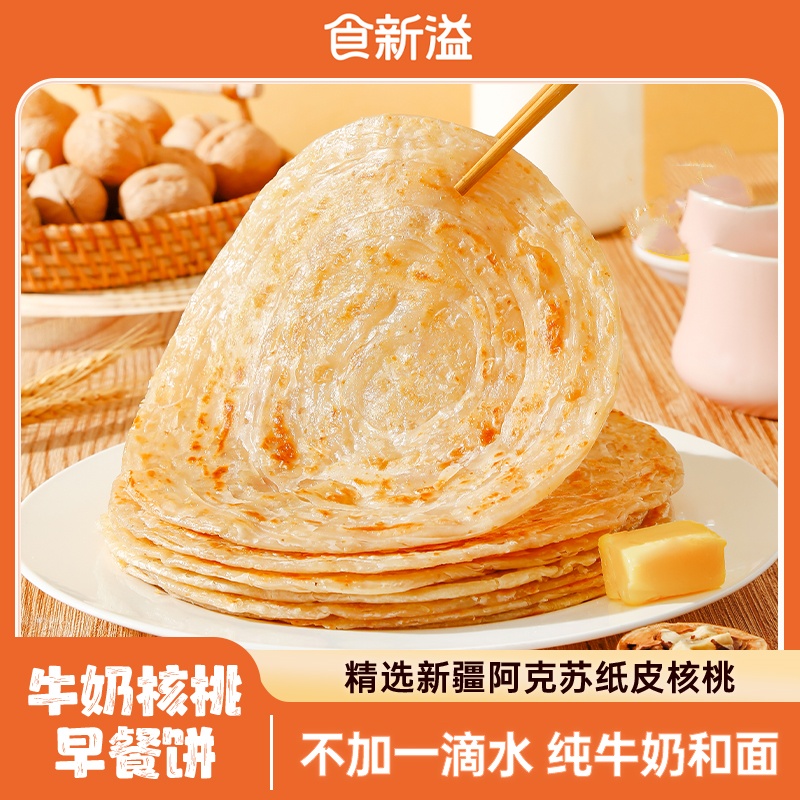商品名称:食新溢 牛奶核桃早餐饼1kg/袋 家庭营养早餐半成品千层饼速食煎饼