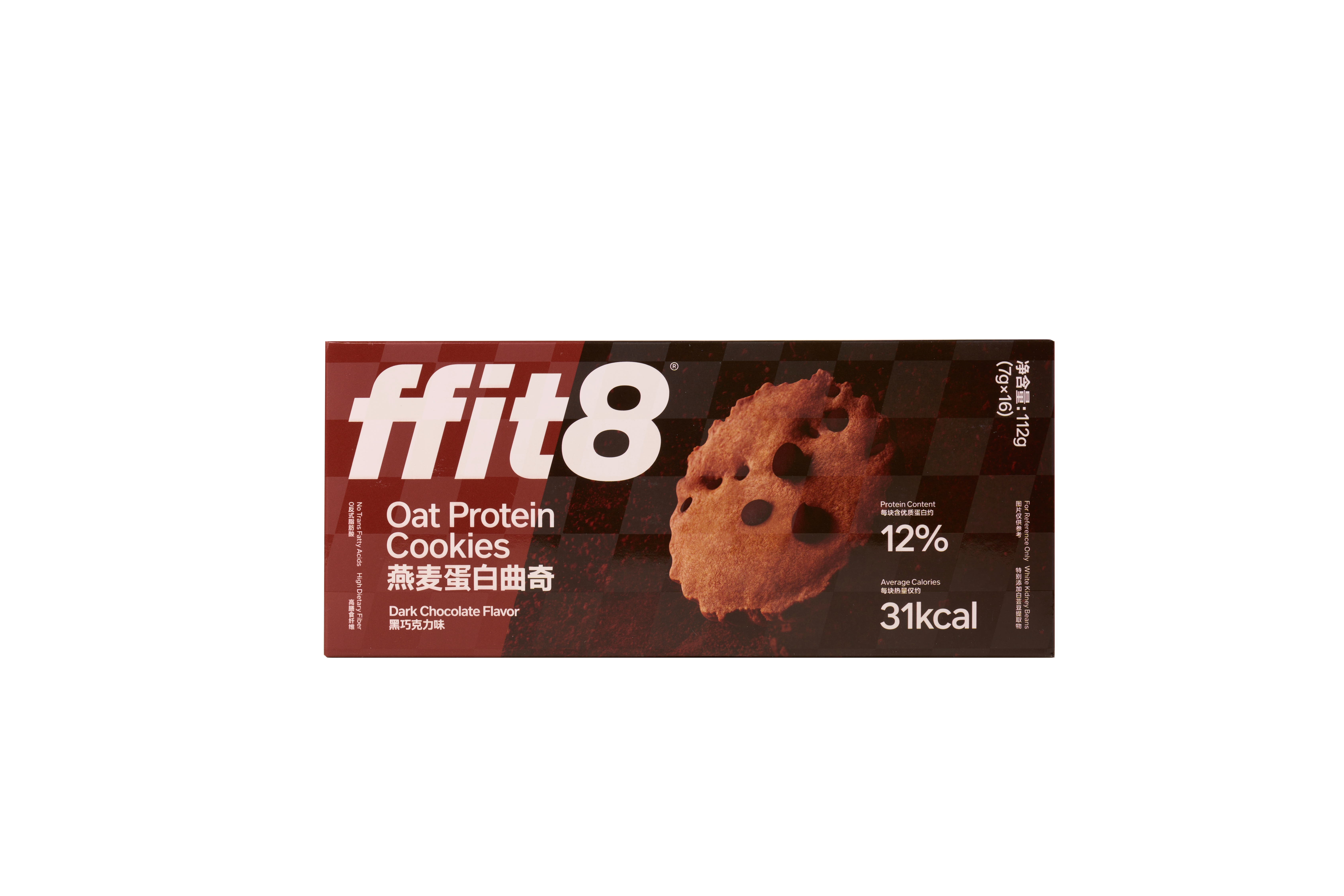 商品名称:ffit8燕麦蛋白曲奇饼干高蛋白高膳食纤维 健康零食 黑巧克力味 112g×2盒