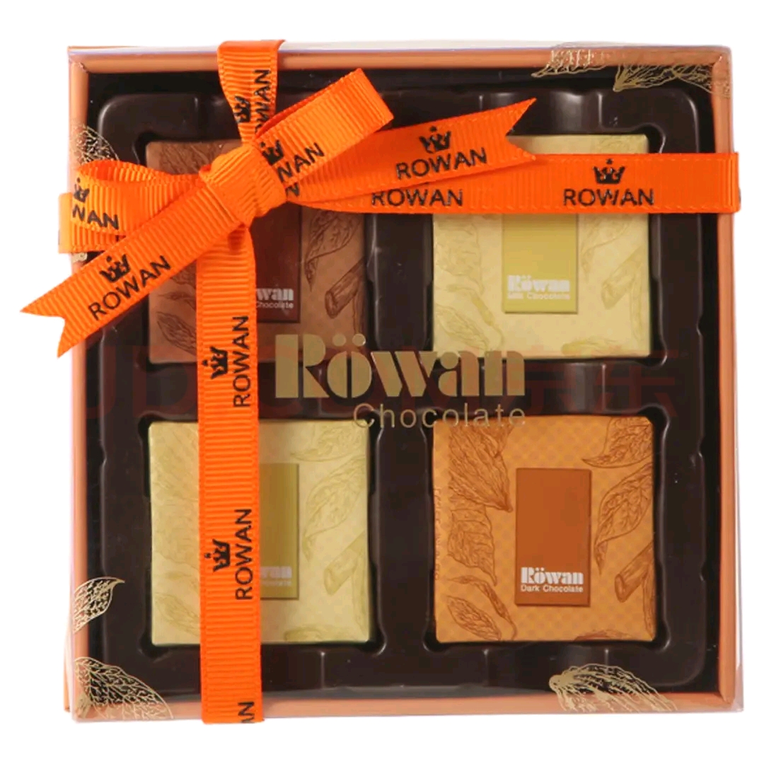 商品名称:Rowan可可果pvc方盒棕咖色礼盒22g*4粒 精心打磨72小时的巧克力浆,微焦可可,回口不酸不涩