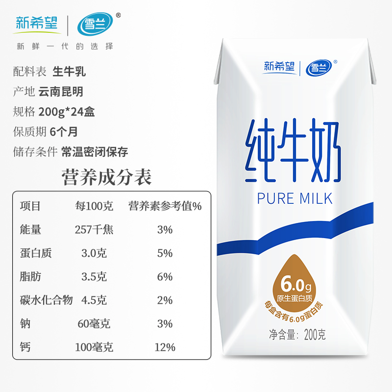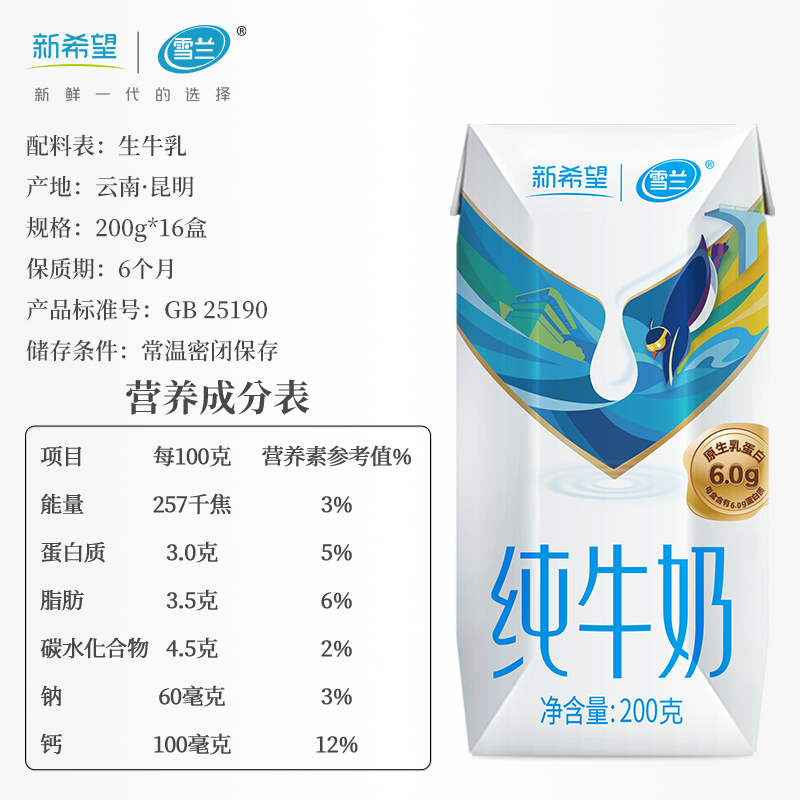 新希望(雪兰)苗条砖心花怒FUN彩云南高原牧场纯牛奶200g*12*2箱