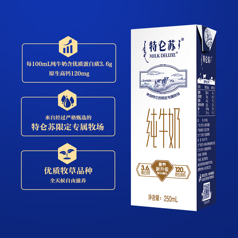 伊利 金典纯牛奶(苗条砖) 12*250ml