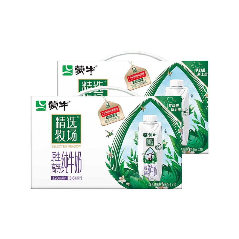 商品名称:蒙牛精选牧场纯牛奶全脂灭菌乳利乐苗条装250ml*12包*2提装